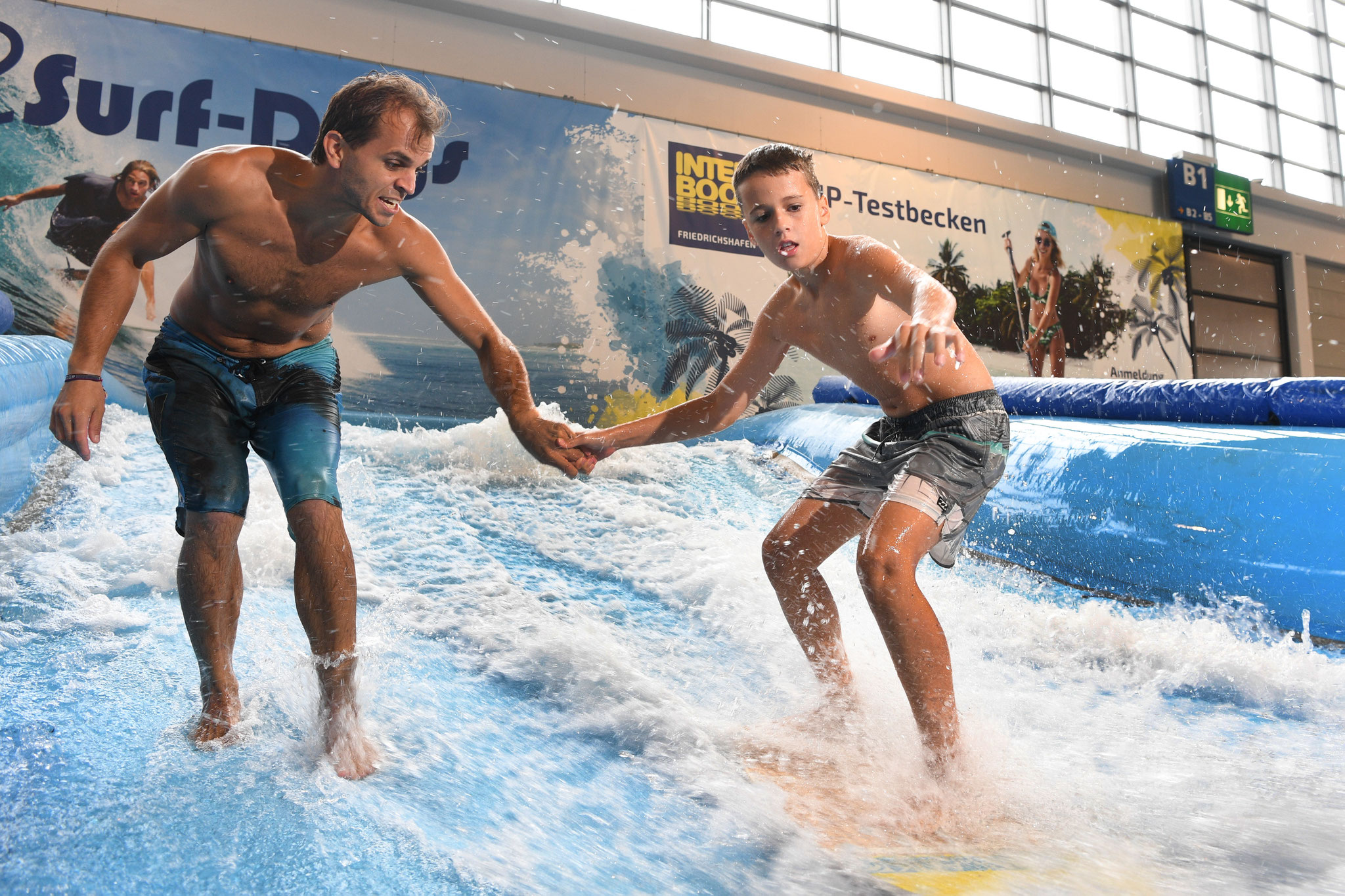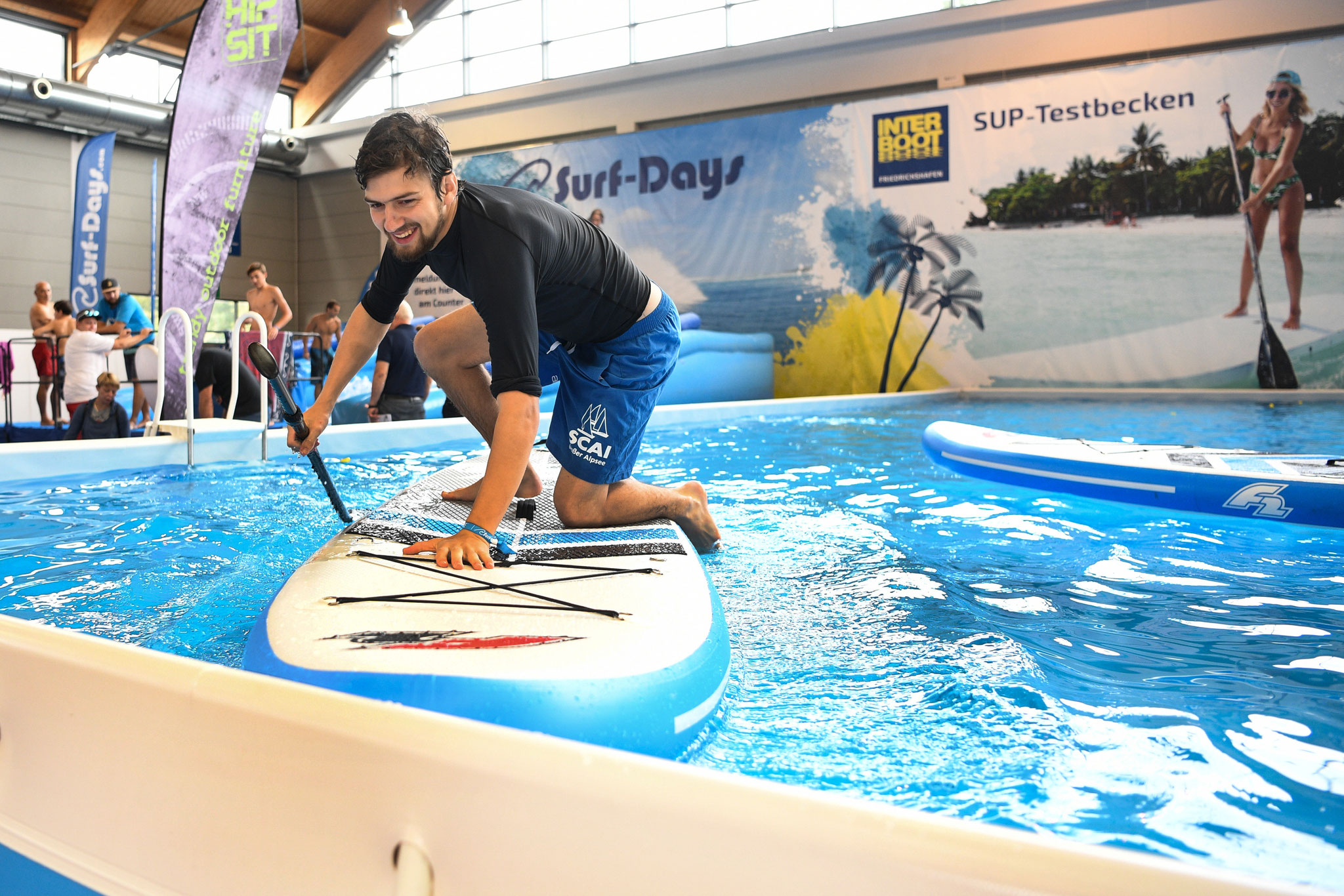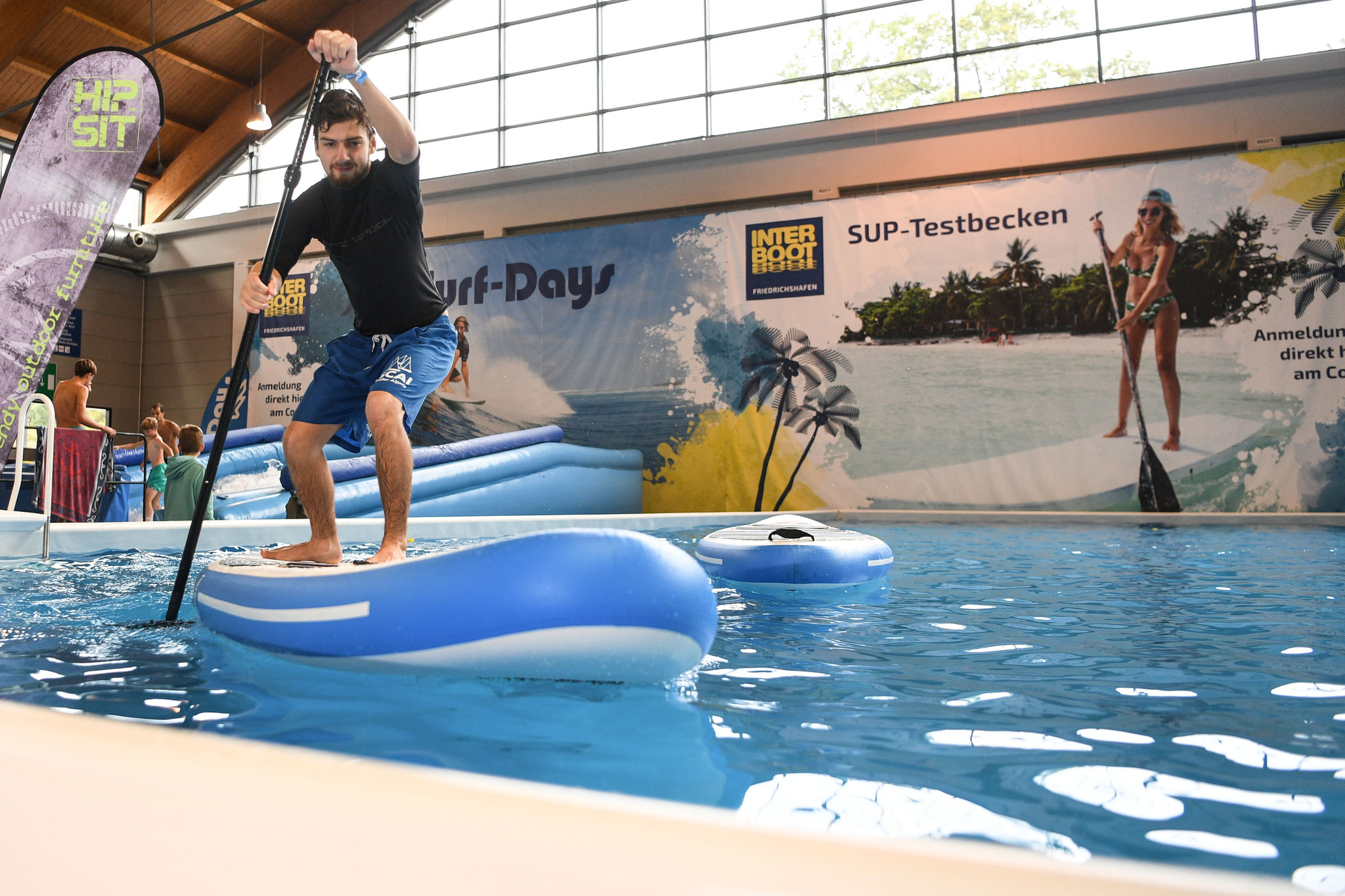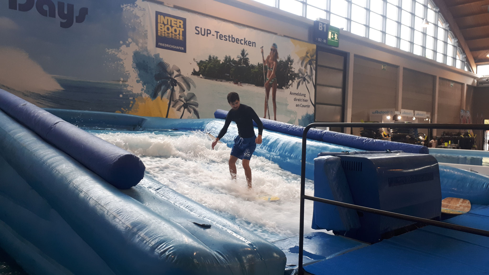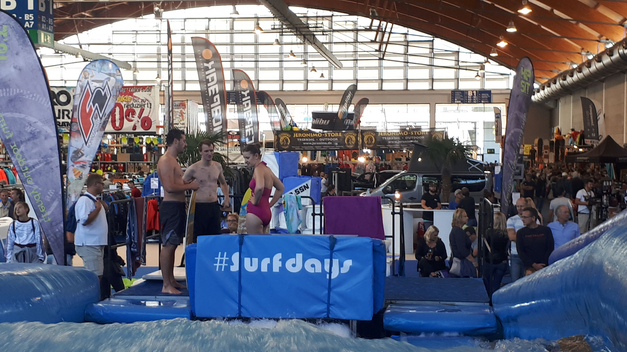 Die Interboot Surf-Days 2018 sind gestartet – mit ausgebuchten Sessions und Besuch von den Meerjungfrauen der Interdive… Mal im Ernst: Das sind schicke, bunte Anzüge – aber die brauchen wir zum Glück in unserem hallenwarmen Flow nicht. Zusammen mit dem SUP-Testbecken sind wir keine emotionale Alternative zum schwäbischen Meer, bieten dafür aber mindestens doppelt so Spaß für Brettsportler. Noch bis kommenden Sonntag den 30. September ist die Interboot geöffnet – das Surfen und SUPpen ist im Messeeintritt enthalten!